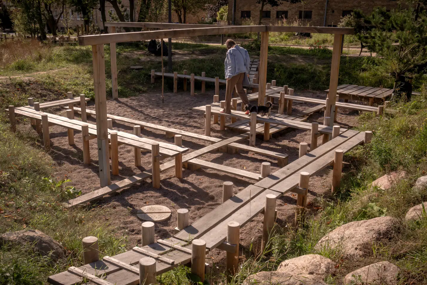 Midt i de meget tidstypiske bebyggelser Bispeparken og Grønningen Nordvest har landskabsarkitekterne fra SLA omdannet et lige så tidstypisk haveanlæg til et vildtvoksende, »jazzet« og temmelig anarkistisk skybrudsprojekt.