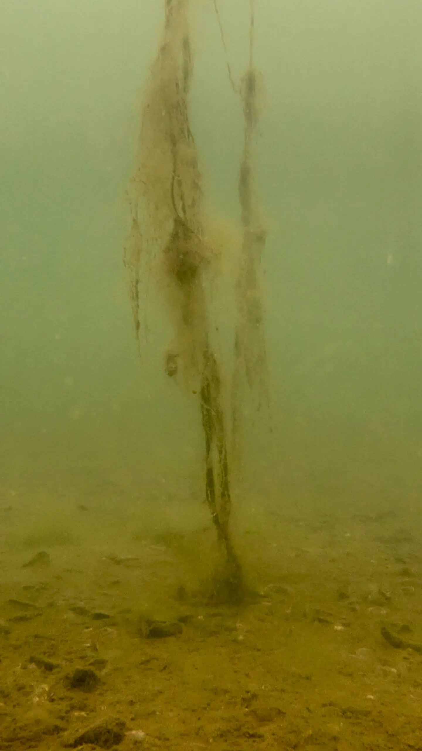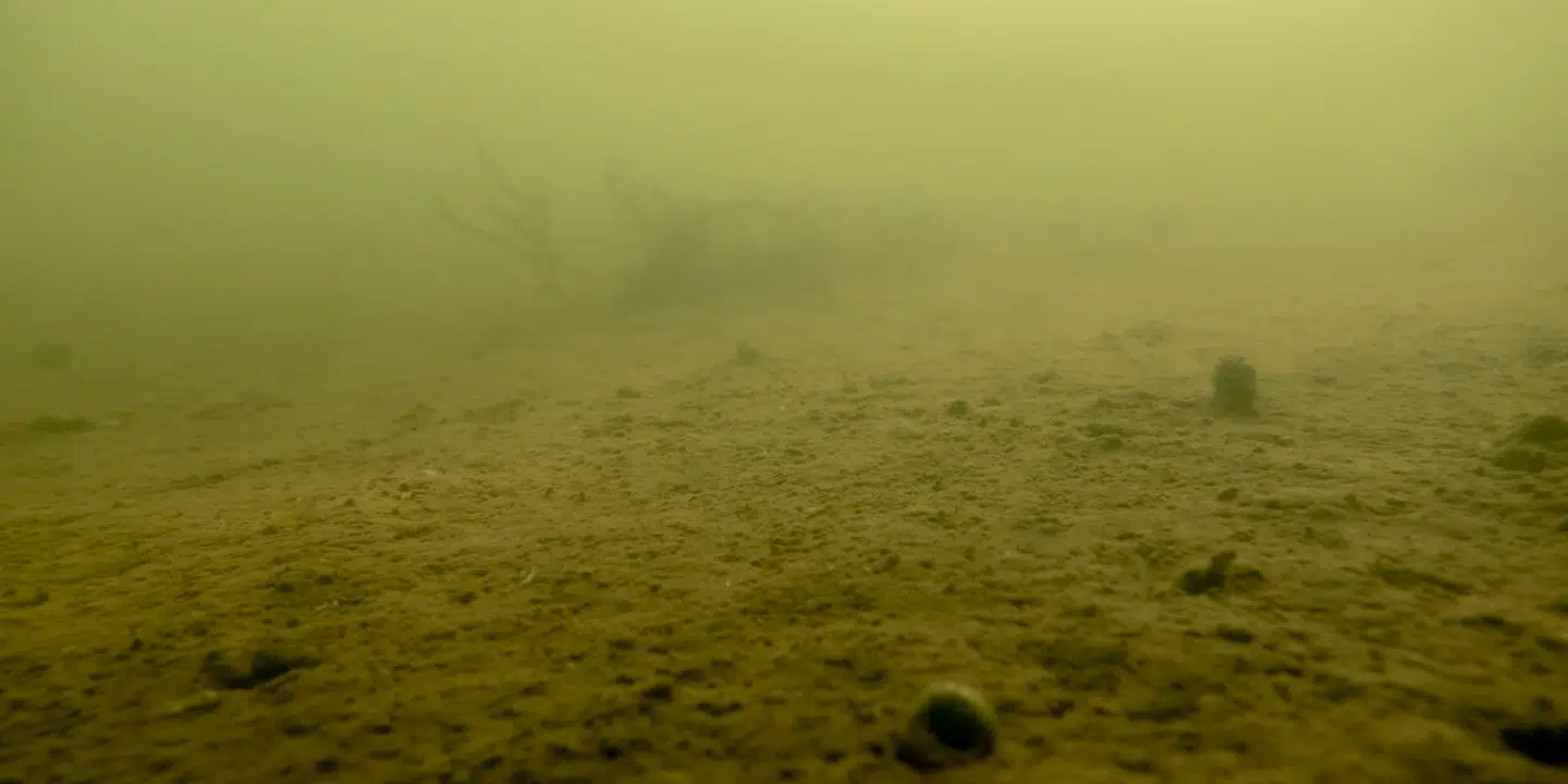 Under vandet venter der os et af de værste syn på vores rundtur i landet. Sigtbarheden er måske 30 centimeter. Bunden kan vi næsten ikke se.