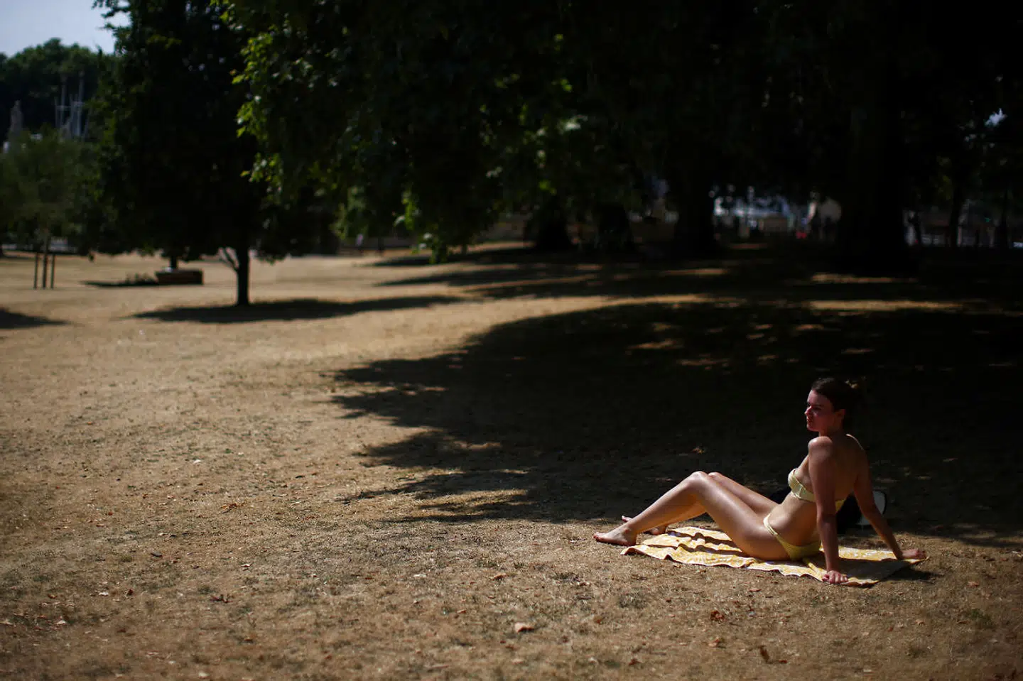 I St. James Park tager en kvinde en slapper i noget meget tørt græs.