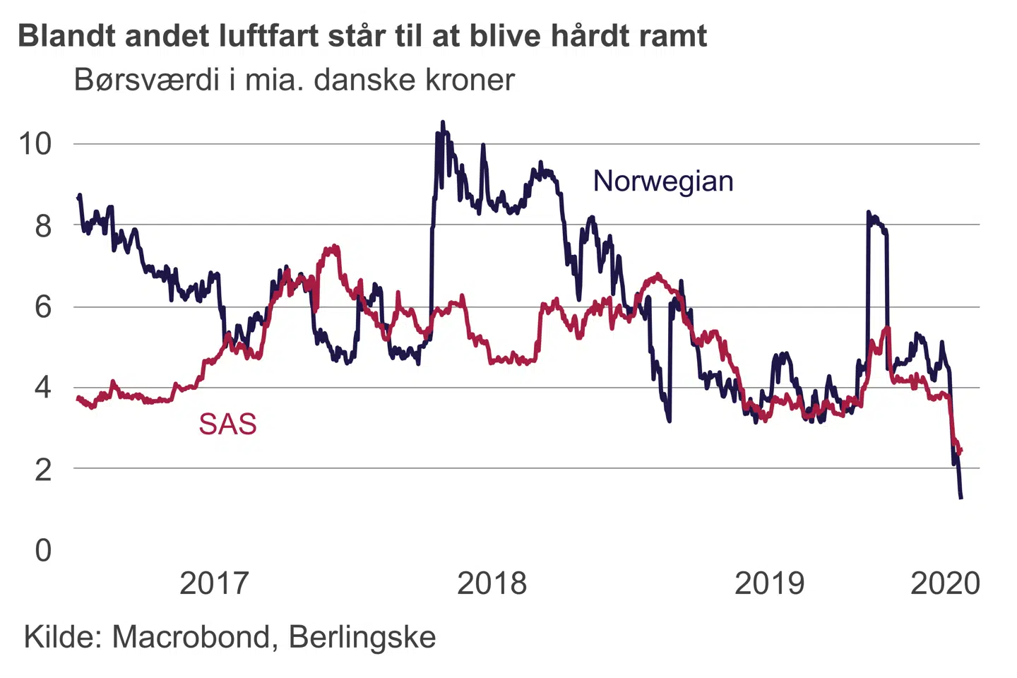 Hver især føler vi os ikke fattigere af at spise hjemme en fredag i stedet for en aften i byen. Men det løber hurtigt op for samfundet. Smitteeksplosionen i Europa og USA sker desuden oven i, at produktionsnedlukning i Kina allerede har ramt både turistindustri og ikke mindst produktionsvirksomheder. I Kina er man så småt ved at normalisere situationen, men det hjælper os ikke særlig meget her og nu.