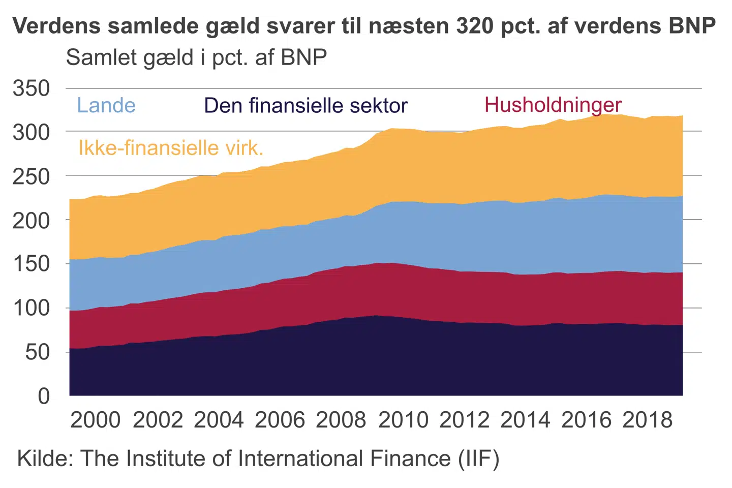 IIF er bekymret for, at den høje gældsætning kan komme til at true den finansielle stabilitet på længere sigt, især fordi der ikke umiddelbart er nogen udsigt til, at den globale gæld vil blive mindre i de kommende måneder.