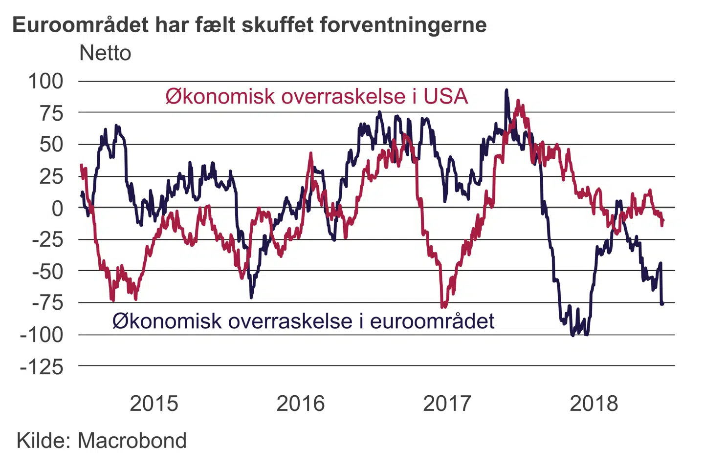 En kraftig afmatning vil skabe et stort dilemma for ECB. Pengepolitikken er fortsat ekstremt vækstunderstøttende, men har nok mistet meget af sin evne til at påvirke realøkonomien. Skal Frankfurt fortsætte med den planlagte normalisering af pengepolitikken, selvom vækstudsigterne forværres yderligere? Hvad kan ECB gøre, hvis der sker en kraftig forværring? Opkøb af endnu flere statsobligationer virker ikke som en særlig effektiv metode, i lyset af at væksten aftog, mens opkøbsprogrammet fortsat kørte. Og skal man købe op, mens Frankrig bryder det finanspolitiske regelsæt? En svækkelse af vækstudsigterne kan skubbe den første renteforhøjelse ud til 2020 – det vil så også gælde for Nationalbanken.