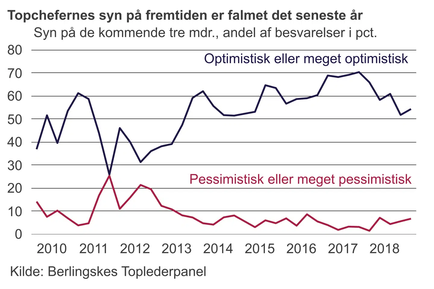 Der er gradvist kommet flere panderynker på de danske direktionsgange i løbet af det seneste år. Optimismen blandt de danske topledere ligger nemlig på et noget lavere niveau i dag, end tilfældet var for blot et år siden.
