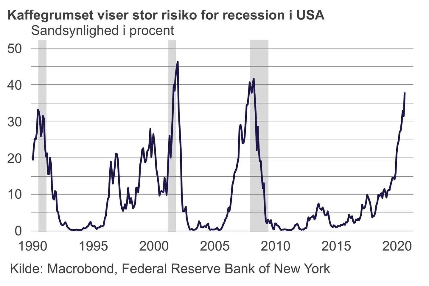 Der er her, at juryen fortsat voterer. På den ene side viser New York Federal Reserves recessions-indikator, at risikoen for recession nu er på samme niveau som i 2008. På den anden side viser en opgørelse fra Citibank, at nøgletallene for amerikansk økonomi har overrasket positivt siden begyndelsen af september.