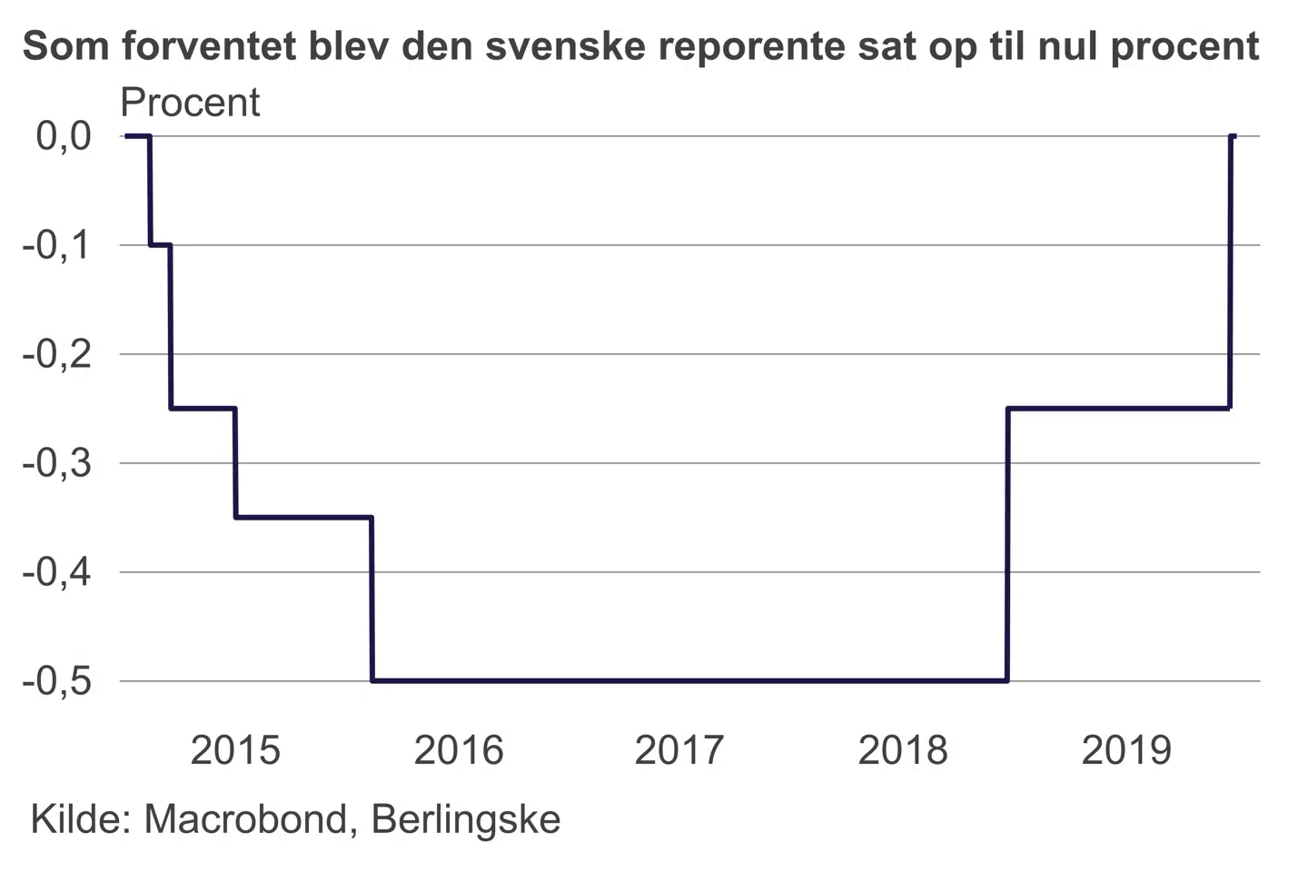 Ligesom det var tydeligt i referatet fra mødet i oktober, gør Riksbanken det også klart i dagens pressemeddelelse, at man ikke har noget principielt imod negative renter: Renten kan sættes op og ned fra det nuværende niveau efter de økonomiske forhold. Det ændrer dog ikke på, at timingen af renteforhøjelsen gør det nærliggende at drage en mere håndfast konklusion om Riksbankens forhold til negative renter som instrument.