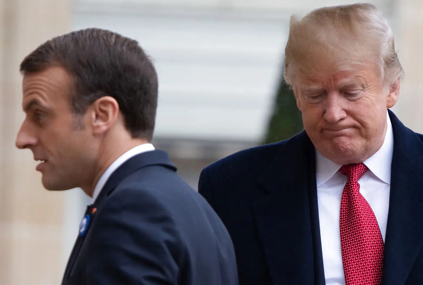Ved en mindehøjtidelighed for 100-året for Første Verdenskrigs afslutning i november sidste år tweetede Donald Trump under den franske præsidents, Emmanuel Macrons, tale – her langede Trump ud efter blandt andet vinpriser.