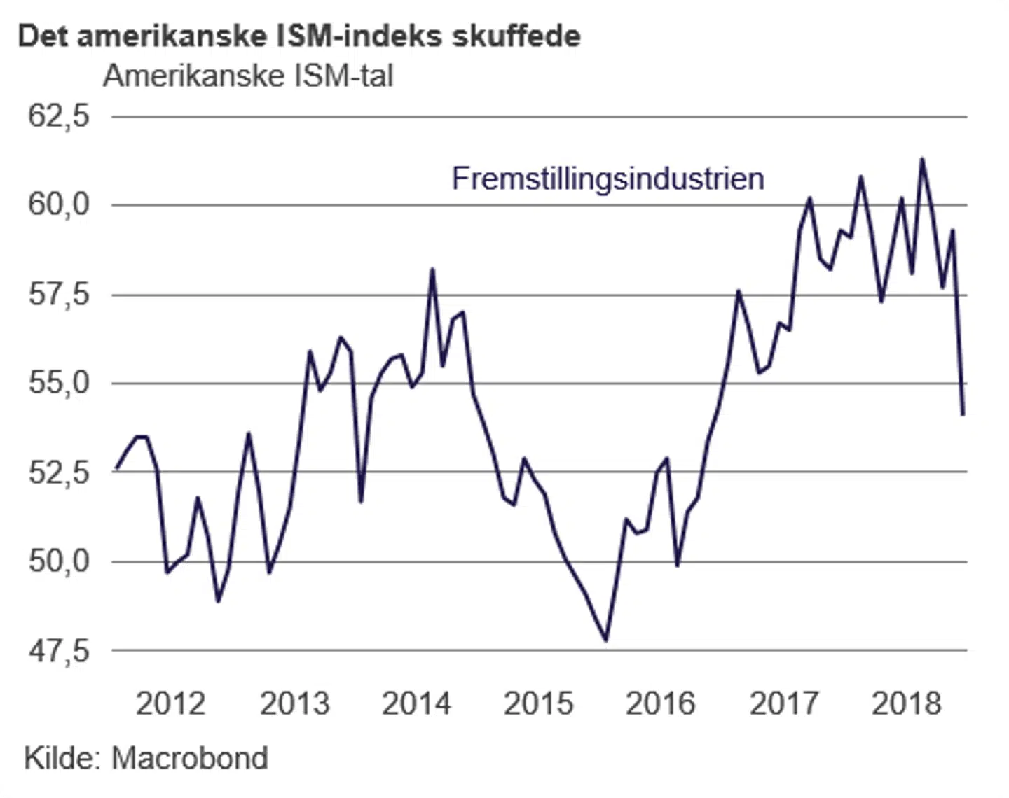 Torsdag aften kom de amerikanske indkøbschefers indeks over aktiviteten i fremstillingsindustrien (ISM-indekset), som tog et kraftigt dyk fra 59,3 i november til 54,1 i december. Nærmere beskrevet var dette det største fald i ISM-indekset siden oktober 2008, og indekset er nu på det laveste niveau i to år. Faldet antyder, at aktiviteten nu er kommet ned i et lavere gear.