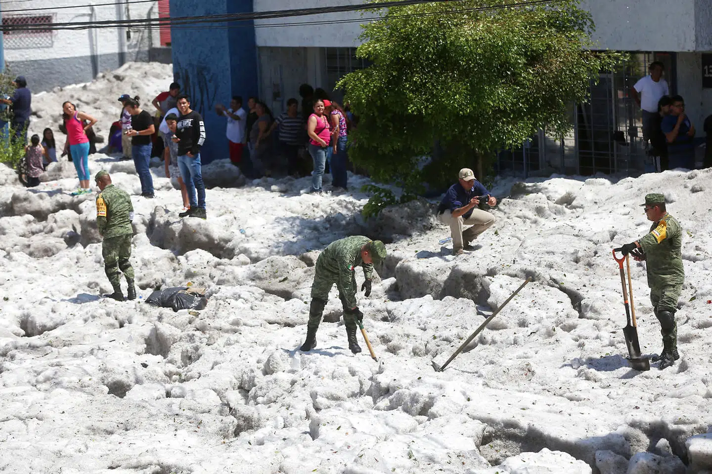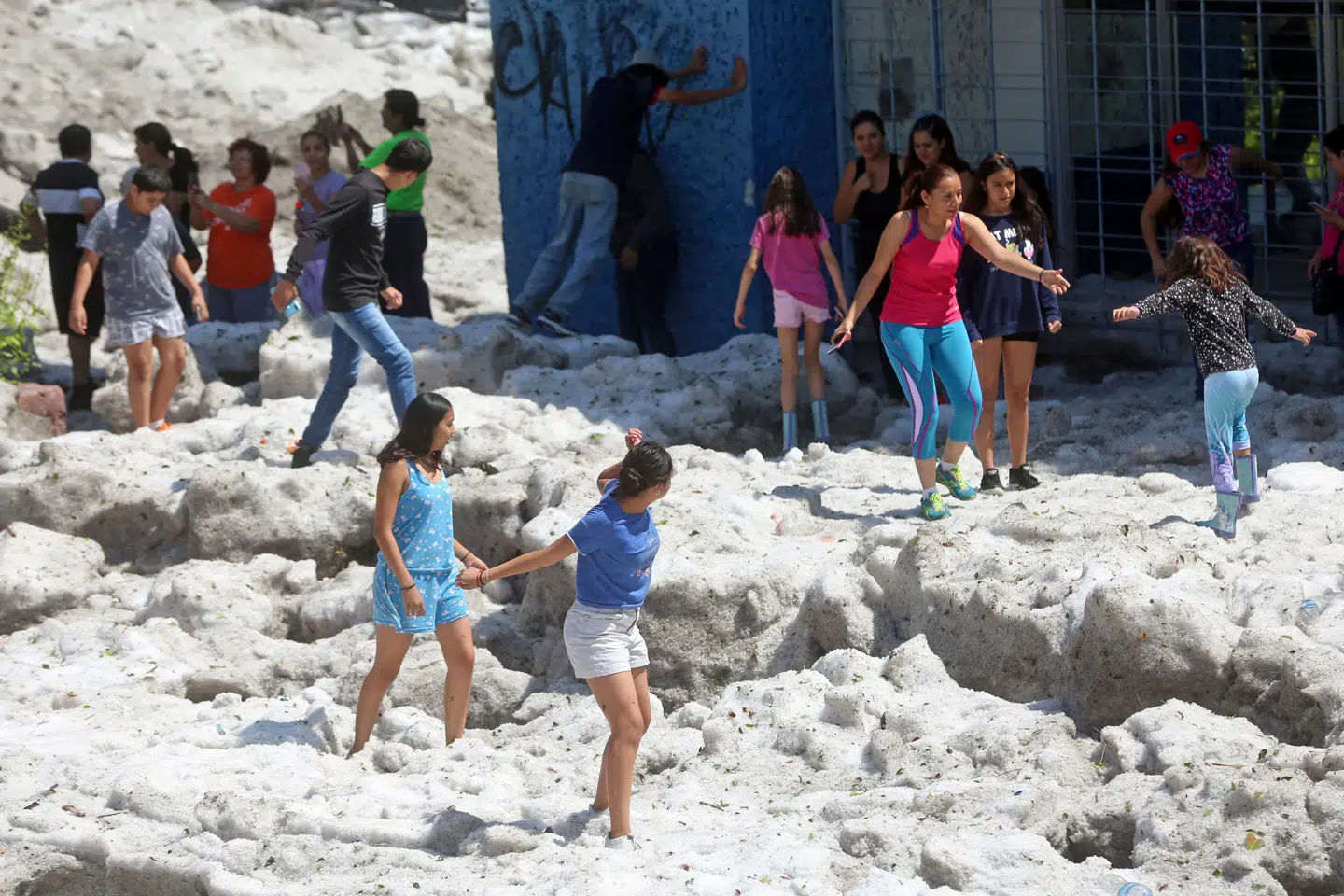 Byen blev søndag ramt af et uvejr, der begravede flere bydele i hagl op til 1,5 meters højde.